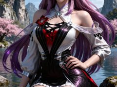 一位少女,严格参考图2的服装样式、发型、发色和背景,参考图1的风格,远景和特写结合,面容精致立体,带着妩媚,媚骨天成,皮肤细腻白皙,露出魅惑的表情,细微神态楚楚动人,背景烘托电影氛围,写实笔触刻画发丝层次与皮肤通透感,CG厚涂增强光影质感,立体光,魅力十足,无瑕娇嫩肌肤,模特身材,完美头身比例,九头身,大长腿,时尚、朝气蓬勃,3D渲染技术,oc渲染,专业摄影光照,大级构建画面,全画幅清晰对焦,使图像达到32K壁纸级质感,闪粉布朗运动,瓷光肌理(SSS次表面3层透光),量子发丝系统(12万根独立动力学)。光线追踪。裸眼3D效果。