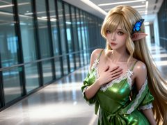 一位少女,严格参考图2的服装样式、发型、发色和背景,参考图1的风格,远景和特写结合,面容精致立体,带着妩媚,媚骨天成,皮肤细腻白皙,露出魅惑的表情,细微神态楚楚动人,背景烘托电影氛围,写实笔触刻画发丝层次与皮肤通透感,CG厚涂增强光影质感,立体光,魅力十足,无瑕娇嫩肌肤,模特身材,完美头身比例,九头身,大长腿,时尚、朝气蓬勃,3D渲染技术,oc渲染,专业摄影光照,大级构建画面,全画幅清晰对焦,使图像达到32K壁纸级质感,闪粉布朗运动,瓷光肌理(SSS次表面3层透光),量子发丝系统(12万根独立动力学)。光线追踪。裸眼3D效果。手遮住胸口。