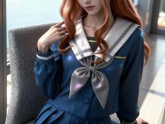一位少女,严格参考图2的服装样式、发型、发色和背景,参考图1的风格,远景和特写结合,面容精致立体,带着妩媚,媚骨天成,皮肤细腻白皙,露出魅惑的表情,细微神态楚楚动人,背景烘托电影氛围,写实笔触刻画发丝层次与皮肤通透感,CG厚涂增强光影质感,立体光,魅力十足,无瑕娇嫩肌肤,成人身材,完美头身比例,九头身,大长腿,时尚、朝气蓬勃,3D渲染技术,oc渲染,专业摄影光照,大级构建画面,全画幅清晰对焦,使图像达到32K壁纸级质感,闪粉布朗运动,瓷光肌理(SSS次表面3层透光),量子发丝系统(12万根独立动力学)。光线追踪。裸眼3D效果。
