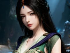 一位少女,参考图中的服装和发型发色,风格转换成写实真人画风,去除动漫感,中国修仙电视剧场景,面容精致立体,真人演出,写实真人,带着妩媚,媚骨天成,皮肤细腻白皙,露出魅惑的表情,细微神态楚楚动人,背景烘托电视剧氛围,真实照片质感。人物肌肤纹理。场景实拍。环境氛围感。人物光影感。明暗对比增强。摄影师拍摄。超真实。