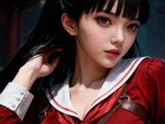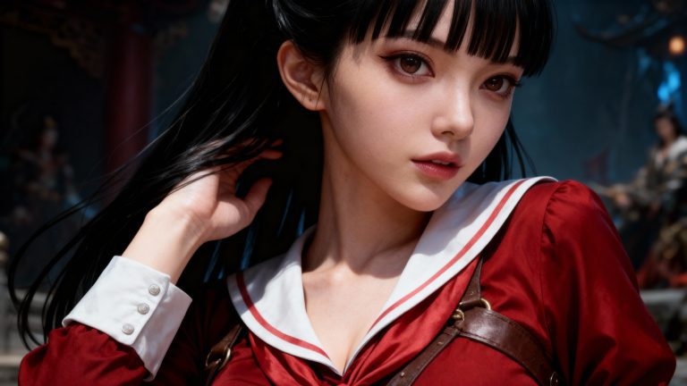 一位少女,参考图中的服装和发型发色,风格转换成写实真人画风,去除动漫感,中国修仙电视剧场景,面容精致立体,真人演出,写实真人,带着妩媚,媚骨天成,皮肤细腻白皙,露出魅惑的表情,细微神态楚楚动人,背景烘托电视剧氛围,真实照片质感。人物肌肤纹理。场景实拍。环境氛围感。人物光影感。明暗对比增强。摄影师拍摄。超真实。