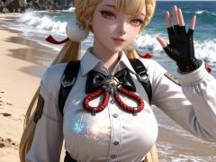 一位少女,严格参考图2的服装样式、发型、发色和背景,参考图1的风格,远景和特写结合,面容精致立体,带着妩媚,媚骨天成,皮肤细腻白皙,露出魅惑的表情,细微神态楚楚动人,背景烘托电影氛围,写实笔触刻画发丝层次与皮肤通透感,CG厚涂增强光影质感,立体光,魅力十足,无瑕娇嫩肌肤,成人身材,完美头身比例,九头身,大长腿,时尚、朝气蓬勃,3D渲染技术,oc渲染,专业摄影光照,大级构建画面,全画幅清晰对焦,使图像达到32K壁纸级质感,闪粉布朗运动,瓷光肌理(SSS次表面3层透光),量子发丝系统(12万根独立动力学)。光线追踪。裸眼3D效果。全身高光