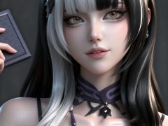 一位少女,严格参考图2的服装样式、发型、发色和背景,参考图1的风格,远景和特写结合,面容精致立体,带着妩媚,媚骨天成,皮肤细腻白皙,露出魅惑的表情,细微神态楚楚动人,背景烘托电影氛围,写实笔触刻画发丝层次与皮肤通透感,CG厚涂增强光影质感,立体光,魅力十足,无瑕娇嫩肌肤,成人身材,完美头身比例,九头身,大长腿,时尚、朝气蓬勃,3D渲染技术,oc渲染,专业摄影光照,大级构建画面,全画幅清晰对焦,使图像达到32K壁纸级质感,瓷光肌理(SSS次表面3层透光),量子发丝系统(12万根独立动力学)。光线追踪。裸眼3D效果。迎面光照。美白滤镜。