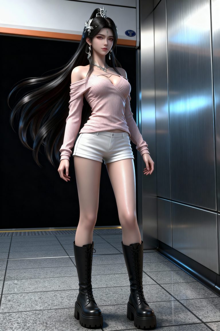 一位少女,严格参考图2的服装样式、发型、发色和背景,参考图1的风格,远景和特写结合,面容精致立体,带着妩媚,媚骨天成,皮肤细腻白皙,露出魅惑的表情,细微神态楚楚动人,背景烘托电影氛围,写实笔触刻画发丝层次与皮肤通透感,CG厚涂增强光影质感,立体光,魅力十足,无瑕娇嫩肌肤,成人身材,完美头身比例,九头身,大长腿,时尚、朝气蓬勃,3D渲染技术,oc渲染,专业摄影光照,大级构建画面,全画幅清晰对焦,使图像达到32K壁纸级质感,瓷光肌理(SSS次表面3层透光),量子发丝系统(12万根独立动力学)。光线追踪。裸眼3D效果。迎面光照。美白滤镜。