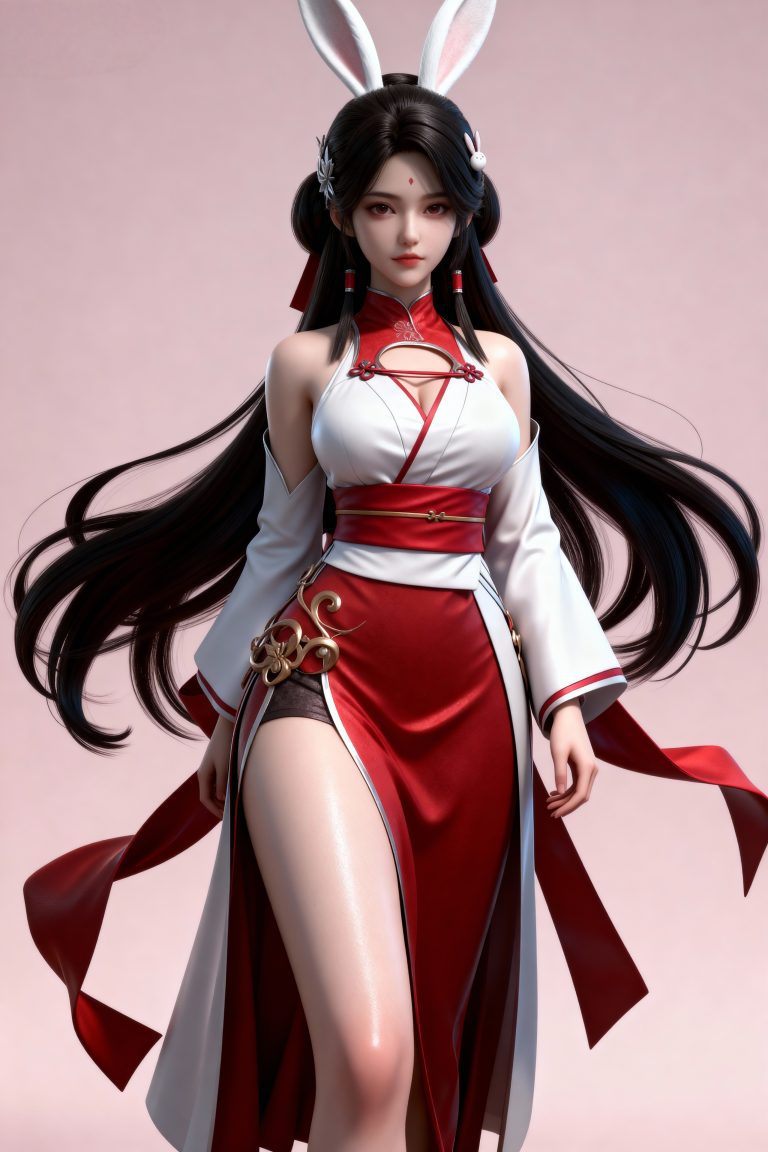 一位少女,严格参考图2的服装样式、发型、发色和背景,参考图1的风格,远景和特写结合,面容精致立体,带着妩媚,媚骨天成,皮肤细腻白皙,露出魅惑的表情,细微神态楚楚动人,背景烘托电影氛围,写实笔触刻画发丝层次与皮肤通透感,CG厚涂增强光影质感,立体光,真实光照,魅力十足,无瑕娇嫩肌肤,成人身材,完美头身比例,九头身,大长腿,时尚、朝气蓬勃,3D渲染技术,oc渲染,专业摄影光照,大级构建画面,全画幅清晰对焦,使图像达到32K壁纸级质感,瓷光肌理(SSS次表面3层透光),量子发丝系统(12万根独立动力学)。光线追踪。裸眼3D效果。迎面光照。美白滤镜。高对比度,赛璐璐风格,白色背景,中式梦核。
