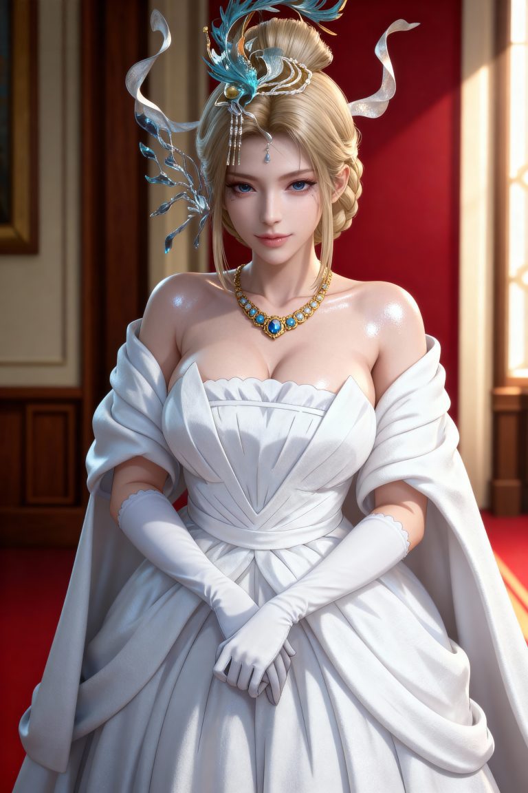 一位少女,严格参考图2的服装样式、发型、发色和背景,参考图1的风格,远景和特写结合,面容精致立体,带着妩媚,媚骨天成,皮肤细腻白皙,露出魅惑的表情,细微神态楚楚动人,背景烘托电影氛围,写实笔触刻画发丝层次与皮肤通透感,CG厚涂增强光影质感,立体光,真实光照,魅力十足,无瑕娇嫩肌肤,成人身材,完美头身比例,九头身,大长腿,时尚、朝气蓬勃,3D渲染技术,oc渲染,专业摄影光照,大级构建画面,全画幅清晰对焦,使图像达到32K壁纸级质感,瓷光肌理(SSS次表面3层透光),量子发丝系统(12万根独立动力学)。光线追踪。裸眼3D效果。迎面光照。美白滤镜。高对比度,赛璐璐风格,白色背景,中式梦核。