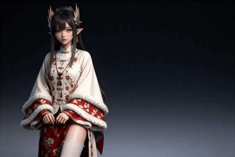 一位年轻亚洲女性,全身像,动漫转贞本义行风格,拥有精致立体的五官,真人比例身材,人物形象参考图2,皮肤白皙细腻,质感通透,整体妆容精致自然,背景为深色渐变,突出人物主体,光线柔和,呈现出专业摄影的质感,画面清晰,细节丰富,具有3D渲染的精致效果。清晰的画面风格,高超清。