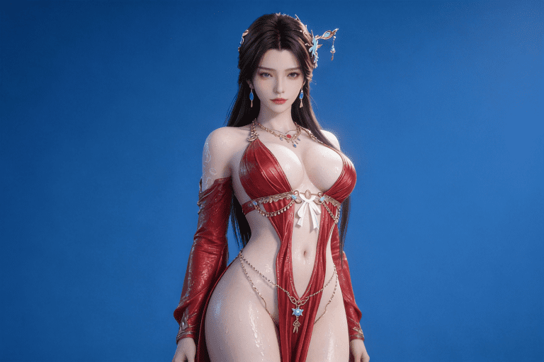 人物形象参考图2,写实风格,写真风格,建模3d皮肤,全身皮肤湿润,精细的皮肤纹理,精细的衣服纹理,白嫩皮肤,美白滤镜,真人3d建模脸,超高分辨率,全身女,冷酷漠视,广角景深,高亮度,立体光,ue5建模,强对比,电影级特效,高挑修长,日系风格,纯色蓝色背景。3d动画渲染,壁纸。散射光,景深。