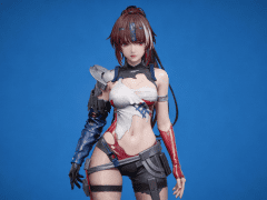 人物形象参考图2,写实风格,写真风格,东方韵味,神性美感,建模3d皮肤,次表面散射,全身皮肤湿润,精细的皮肤纹理,精细的衣服纹理,白嫩皮肤,美白滤镜,真人3d建模脸,超高分辨率,全身女,冷酷漠视,广角景深,高亮度,立体光,ue5建模,强对比,电影级特效,高挑修长,日系风格,纯色蓝色背景。3d动画渲染,壁纸。散射光,景深。