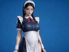 人物形象参考图2,写实风格,写真风格,东方韵味,神性美感,建模3d皮肤,次表面散射,全身皮肤湿润,精细的皮肤纹理,精细的衣服纹理,白嫩皮肤,美白滤镜,真人3d建模脸,超高分辨率,全身女,冷酷漠视,广角景深,高亮度,立体光,ue5建模,强对比,电影级特效,高挑修长,日系风格,纯色蓝色背景。3d动画渲染,壁纸。散射光,景深。