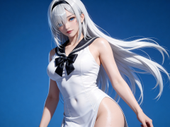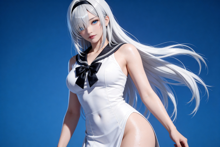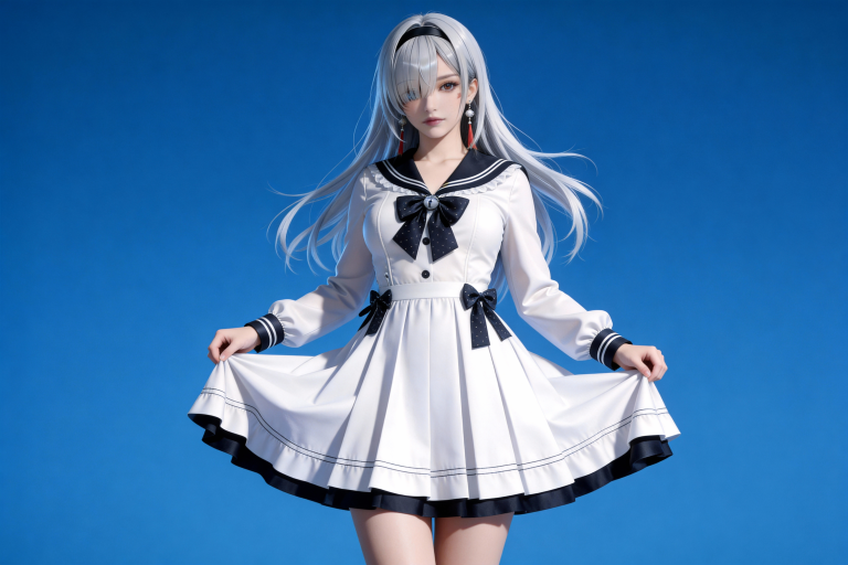 人物形象参考图2,写实风格,写真风格,东方韵味,神性美感,建模3d皮肤,次表面散射,全身皮肤湿润,精细的皮肤纹理,精细的衣服纹理,白嫩皮肤,美白滤镜,真人3d建模脸,超高分辨率,全身女,冷酷漠视,广角景深,高亮度,立体光,ue5建模,强对比,电影级特效,高挑修长,日系风格,纯色蓝色背景。3d动画渲染,壁纸。散射光,景深。0.618黄金比例的身材曲线,细节清晰详尽,运用弥散光和轮廓光特写,高曝,层次感,摆出完美的形体造型,完美构图。