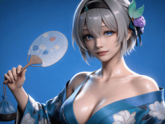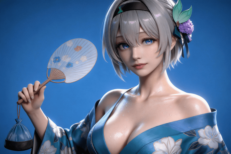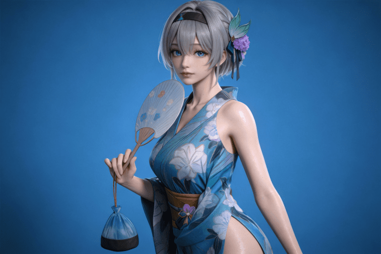 人物形象参考图2,写实风格,写真风格,东方韵味,神性美感,建模3d皮肤,次表面散射,全身皮肤湿润,精细的皮肤纹理,精细的衣服纹理,白嫩皮肤,美白滤镜,真人3d建模脸,超高分辨率,全身女,高亮度,立体光,ue5建模,强对比,电影级特效,高挑修长,日系风格,纯色蓝色背景。3d动画渲染,景深。
