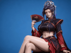 人物形象参考图2,写实风格,写真风格,东方韵味,神性美感,建模3d皮肤,次表面散射,全身皮肤湿润,精细的皮肤纹理,精细的衣服纹理,白嫩皮肤,美白滤镜,真人3d建模脸,超高分辨率,全身女,高亮度,立体光,ue5建模,强对比,电影级特效,高挑修长,日系风格,纯色蓝色背景。3d动画渲染,景深。