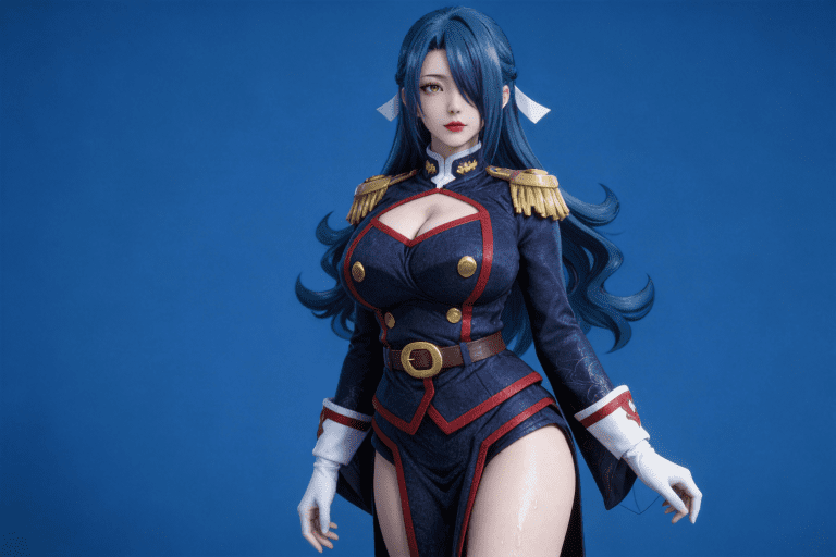 人物形象参考图2,写实风格,写真风格,东方韵味,神性美感,建模3d皮肤,次表面散射,全身皮肤湿润,精细的皮肤纹理,精细的衣服纹理,白嫩皮肤,美白滤镜,真人3d建模脸,超高分辨率,全身女,高亮度,立体光,ue5建模,强对比,电影级特效,高挑修长,日系风格,纯色蓝色背景。3d动画渲染,景深。