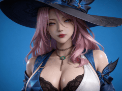 人物形象参考图2,写实风格,写真风格,东方韵味,神性美感,建模3d皮肤,次表面散射,全身皮肤湿润,精细的皮肤纹理,精细的衣服纹理,白嫩皮肤,美白滤镜,真人3d建模脸,超高分辨率,全身女,高亮度,立体光,ue5建模,强对比,电影级特效,高挑修长,日系风格,纯色蓝色背景。3d动画渲染,景深。