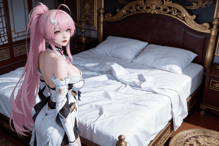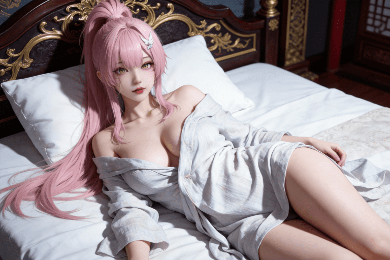 人物形象参考图2,写实风格,写真风格,东方韵味,神性美感,建模3d皮肤,次表面散射,全身皮肤湿润,精细的皮肤纹理,精细的衣服纹理,白嫩皮肤,美白滤镜,真人3d建模脸,超高分辨率,全身女,高亮度,立体光,ue5建模,强对比,电影级特效,高挑修长,日式风格,3d动画渲染,景深。“人物平躺在豪华古代床上搔首弄姿”,刚睡醒的姿势,衣服稍微有点凌乱。镜头对着床头拍。