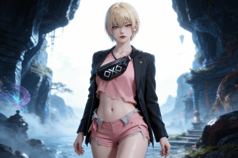 人物形象参考图2,写实风格,写真风格,东方韵味,神性美感,建模3d皮肤,次表面散射,全身皮肤湿润,精细的皮肤纹理,精细的衣服纹理,白嫩皮肤,美白滤镜,真人3d建模脸,超高分辨率,全身女,高亮度,立体光,ue5建模,强对比,电影级特效,高挑修长,日式风格,凡人修仙传动画风格,3d动画渲染,景深。玄幻秘境背景,衣服稍微有点凌乱。