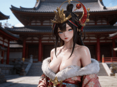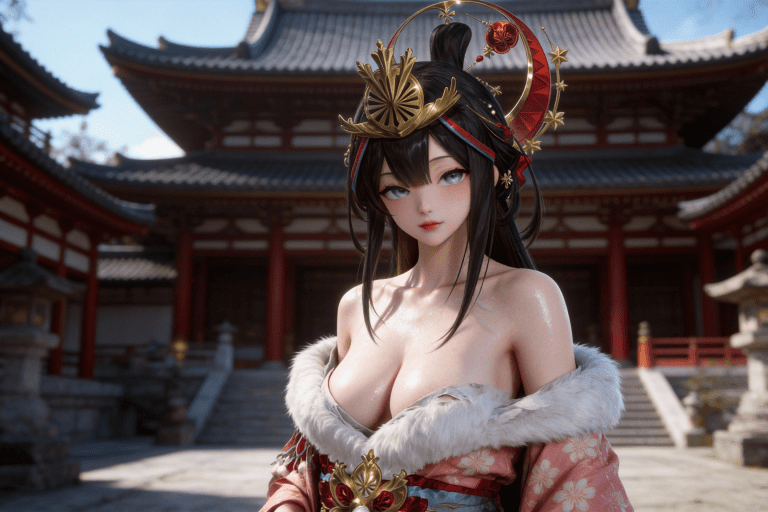 人物形象参考图2,写实风格,写真风格,东方韵味,神性美感,建模3d皮肤,次表面散射,全身皮肤湿润,精细的皮肤纹理,精细的衣服纹理,白嫩皮肤,美白滤镜,真人3d建模脸,超高分辨率,全身女,高亮度,立体光,ue5建模,强对比,电影级特效,高挑修长,日式风格,凡人修仙传动画风格,3d动画渲染,景深。日式寺庙背景,衣服稍微有点凌乱。
