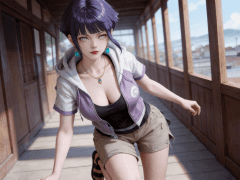 人物形象参考图2,写实风格,写真风格,东方韵味,神性美感,建模3d皮肤,次表面散射,全身皮肤湿润,精细的皮肤纹理,精细的衣服纹理,白嫩皮肤,美白滤镜,真人3d建模脸,超高分辨率,全身女,高亮度,立体光,ue5建模,强对比,电影级特效,高挑修长,日式风格,凡人修仙传动画风格,3d动画渲染,景深。参考图2背景,衣服稍微有点凌乱。bjd人偶感。