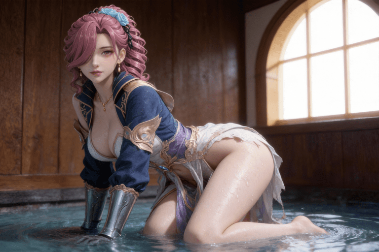 人物形象参考图2,写实风格,写真风格,东方韵味,神性美感,建模3d皮肤,次表面散射,全身皮肤湿润,精细的皮肤纹理,精细的衣服纹理,白嫩皮肤,美白滤镜,真人3d建模脸,超高分辨率,全身女,高亮度,立体光,ue5建模,强对比,电影级特效,高挑修长,日式风格,凡人修仙传动画风格,3d动画渲染,景深。参考图2背景,衣服稍微有点凌乱。bjd人偶感。
