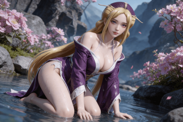 人物形象参考图2,写实风格,写真风格,东方韵味,神性美感,建模3d皮肤,次表面散射,全身皮肤湿润,精细的皮肤纹理,精细的衣服纹理,白嫩皮肤,美白滤镜,真人3d建模脸,超高分辨率,全身女,高亮度,立体光,ue5建模,强对比,电影级特效,高挑修长,日式风格,凡人修仙传动画风格,3d动画渲染,景深。参考图2背景,衣服稍微有点凌乱。bjd人偶感。