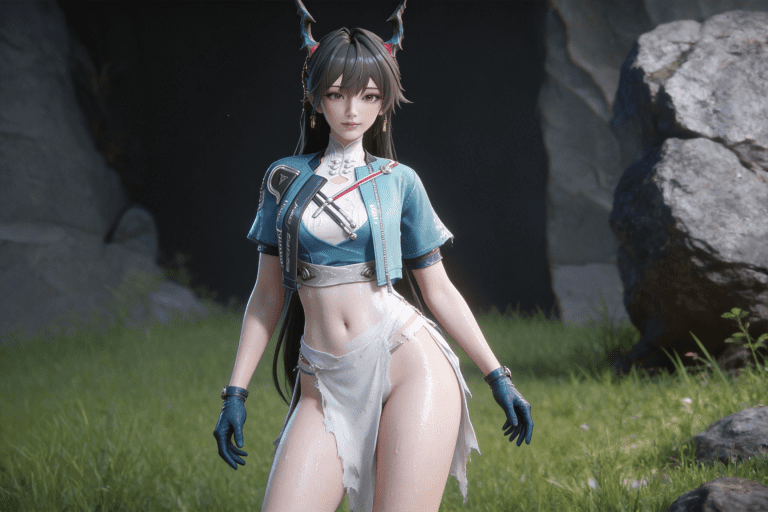人物形象参考图2,写实风格,写真风格,东方韵味,神性美感,建模3d皮肤,次表面散射,全身皮肤湿润,精细的皮肤纹理,精细的衣服纹理,白嫩皮肤,美白滤镜,真人3d建模脸,超高分辨率,全身女,高亮度,立体光,ue5建模,高细节,强对比,电影级特效,高挑修长,日式风格,凡人修仙传动画风格,3d动画渲染,景深。参考图2背景,衣服稍微有点凌乱。bjd人偶感。