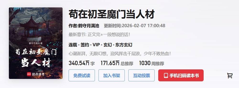 这部东方玄幻作品自2025年1月13日开篇以来,以341万字的宏大篇幅描绘了一个弱肉强食的魔道世界。主角吕阳凭借异宝【百世书】在初圣宗内不断轮回重生,从资质平庸的记名弟子一步步攀登至魔道巅峰的历程,引发了无数读者共鸣。鲜为人知的是,作者在创作初期正面临家庭破产的困境,背负着常人难以想象的经济压力。”当时每天睁眼就是巨额债务,写小说是我唯一能看到希望的路。”鹤守月满池曾在一次读者见面会上这样坦言。