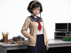 新三维古风,人物形象和服装参考图2,写实风格,写真风格,东方韵味,神性美感,建模3d皮肤,次表面散射,皮肤光泽感强,水润通透,精细的皮肤纹理,精细的衣服纹理,白嫩皮肤,美白滤镜,真人3d建模脸,超高分辨率,全身女,ue5建模,高细节,电影级特效,高挑修长,日式风格,3d动画渲染,景深。参考图2背景,bjd人偶感。