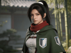mikasa,写实风格,写真风格,东方韵味,神性美感,建模3d皮肤,次表面散射,皮肤光泽感强,水润通透,精细的皮肤纹理,精细的衣服纹理,白嫩皮肤,美白滤镜,真人3d建模脸,超高分辨率,全身女,ue5建模,高细节,电影级特效,高挑修长,日式风格,3d动画渲染,景深。高饱和,反射,折射,肌理质感。大片高级感,电影美学,大师杰作。CGI,虚幻引擎5渲染,oc渲染。