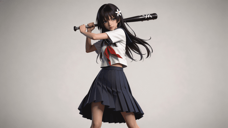 cosplay参考图中的人物,摆出帅气姿势,写实风格,写真风格,东方韵味,神性美感,建模3d皮肤,次表面散射,皮肤光泽感强,水润通透,精细的皮肤纹理,精细的衣服纹理,白嫩皮肤,美白滤镜,真人3d建模脸,超高分辨率,全身女,ue5建模,高细节,电影级特效,高挑修长,3d动画渲染,景深。高饱和,反射,折射,肌理质感。大片高级感,电影美学,大师杰作。CGI,虚幻引擎5渲染,oc渲染。白色短袖水手服上衣,材质为棉质布料,表面有轻微褶皱感;领口为深蓝色翻领设计,领边有白色条纹装饰;领结为红色蝴蝶结,系于胸前,领结宽大且自然垂落;下身穿着深蓝色百褶短裙,裙摆较长,呈不规则层次设计,前短后长,裙身有多层褶皱,增强动感;头发用白色小花发饰固定,发饰为五瓣花朵造型,贴合发际线;整体为日式高中女生校服风格,清新自然,色彩以白、蓝、红为主,线条简洁。高细节,清晰线条,光影柔和。