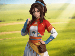 cosplay参考图中的人物,摆出帅气姿势,写实风格,写真风格,东方韵味,神性美感,建模3d皮肤,次表面散射,皮肤光泽感强,水润通透,精细的皮肤纹理,精细的衣服纹理,白嫩皮肤,美白滤镜,真人3d建模脸,超高分辨率,全身女,ue5建模,高细节,电影级特效,高挑修长,3d动画渲染,景深。高饱和,反射,折射,肌理质感。大片高级感,电影美学,大师杰作。CGI,虚幻引擎5渲染,oc渲染。高颜值,既视感,情绪氛围感拉满,透视感,胶片颗粒质感,层次丰富,写意,朦胧美学,光的美学,lomo效果,高级感,杰作,皮肤白皙干净光滑水润细腻清透。干净光滑的画面风格,呈现出极致清晰的光滑镜面质感画风。古风游戏CG,CG特效,惊艳,丁达尔光效。电视剧滤镜,五官立体。场景构图。