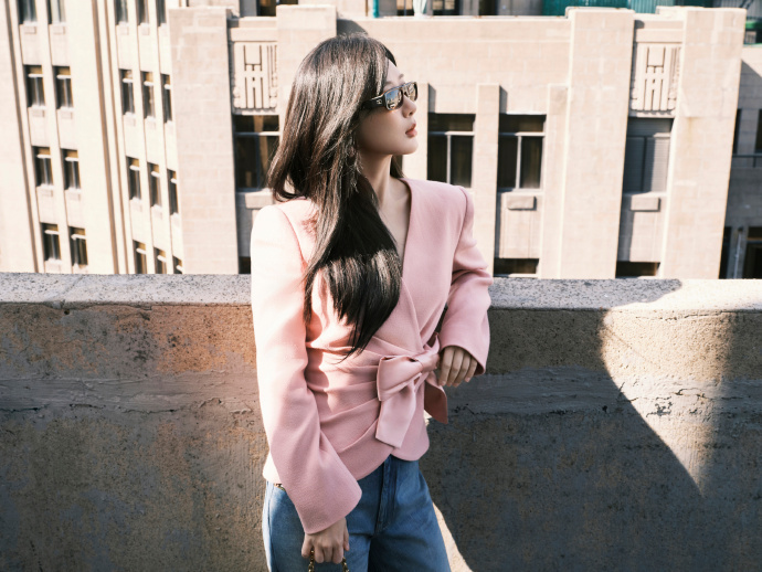 当天,杨紫身穿桃粉色V领收腰西装,搭配超大立体蝴蝶结,甜美又吸睛。內搭白色上衣,下身搭配牛仔裤,甜酷混搭的风格既有少女感又不失时尚气场。