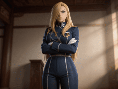cosplay参考图中的人物,摆出帅气姿势,写实风格,写真风格,东方韵味,神性美感,建模3d皮肤,次表面散射,皮肤光泽感强,水润通透,精细的皮肤纹理,精细的衣服纹理,白嫩皮肤,美白滤镜,真人3d建模脸,超高分辨率,全身女,ue5建模,高细节,电影级特效,高挑修长,3d动画渲染,景深。高饱和,反射,折射,肌理质感。大片高级感,电影美学,大师杰作。CGI,虚幻引擎5渲染,oc渲染。高颜值,既视感,情绪氛围感拉满,透视感,胶片颗粒质感,层次丰富,写意,朦胧美学,光的美学,lomo效果,高级感,杰作,皮肤白皙干净光滑水润细腻清透。干净光滑的画面风格,呈现出极致清晰的光滑镜面质感画风。古风游戏CG,CG特效,惊艳,丁达尔光效。电视剧滤镜,五官立体。场景构图。