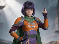 cosplay参考图中的人物,摆出帅气姿势,写实风格,写真风格,东方韵味,神性美感,建模3d皮肤,次表面散射,皮肤光泽感强,水润通透,精细的皮肤纹理,精细的衣服纹理,白嫩皮肤,美白滤镜,真人3d建模脸,超高分辨率,全身女,ue5建模,高细节,电影级特效,高挑修长,3d动画渲染,景深。高饱和,反射,折射,肌理质感。大片高级感,电影美学,大师杰作。CGI,虚幻引擎5渲染,oc渲染。高颜值,既视感,情绪氛围感拉满,透视感,胶片颗粒质感,层次丰富,写意,朦胧美学,光的美学,lomo效果,高级感,杰作,皮肤白皙干净光滑水润细腻清透。干净光滑的画面风格,呈现出极致清晰的光滑镜面质感画风。古风游戏CG,CG特效,惊艳,丁达尔光效。电视剧滤镜,五官立体。场景构图。