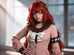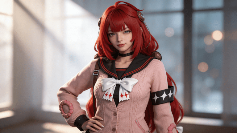 cosplay参考图中的人物,摆出帅气姿势,写实风格,写真风格,神性美感,建模3d皮肤,次表面散射,皮肤光泽感强,水润通透,精细的皮肤纹理,精细的衣服纹理,白嫩皮肤,美白滤镜,真人3d建模脸,超高分辨率,全身女,ue5建模,高细节,电影级特效,高挑修长,3d动画渲染,大片高级感,电影美学,大师杰作。CGI,虚幻引擎5渲染,oc渲染。皮肤白皙干净光滑水润细腻清透。干净光滑的画面风格,呈现出极致清晰的光滑镜面质感画风。CG特效,惊艳,丁达尔光效。电视剧滤镜,五官立体。场景构图。强烈的明暗对比,垂坠感,丰富细节,朦胧感,强化面部阴影,柔焦处理的高斯模糊效果,明暗交错的戏剧性光影,虚实结合的构图张力,双色温闪光灯布光,背景光斑虚化处理。