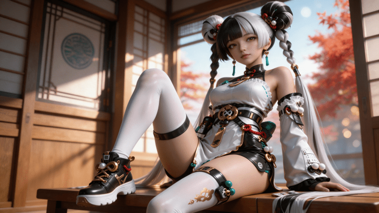 cosplay参考图中的人物,摆出帅气姿势,写实风格,写真风格,神性美感,建模3d皮肤,次表面散射,皮肤光泽感强,水润通透,精细的皮肤纹理,精细的衣服纹理,白嫩皮肤,美白滤镜,真人3d建模脸,超高分辨率,全身女,ue5建模,高细节,电影级特效,高挑修长,3d动画渲染,大片高级感,电影美学,大师杰作。CGI,虚幻引擎5渲染,oc渲染。皮肤白皙干净光滑水润细腻清透。干净光滑的画面风格,呈现出极致清晰的光滑镜面质感画风。CG特效,惊艳,丁达尔光效。电视剧滤镜,五官立体。场景构图。强烈的明暗对比,垂坠感,丰富细节,朦胧感,强化面部阴影,柔焦处理的高斯模糊效果,明暗交错的戏剧性光影,虚实结合的构图张力,双色温闪光灯布光,背景光斑虚化处理。高精建模。