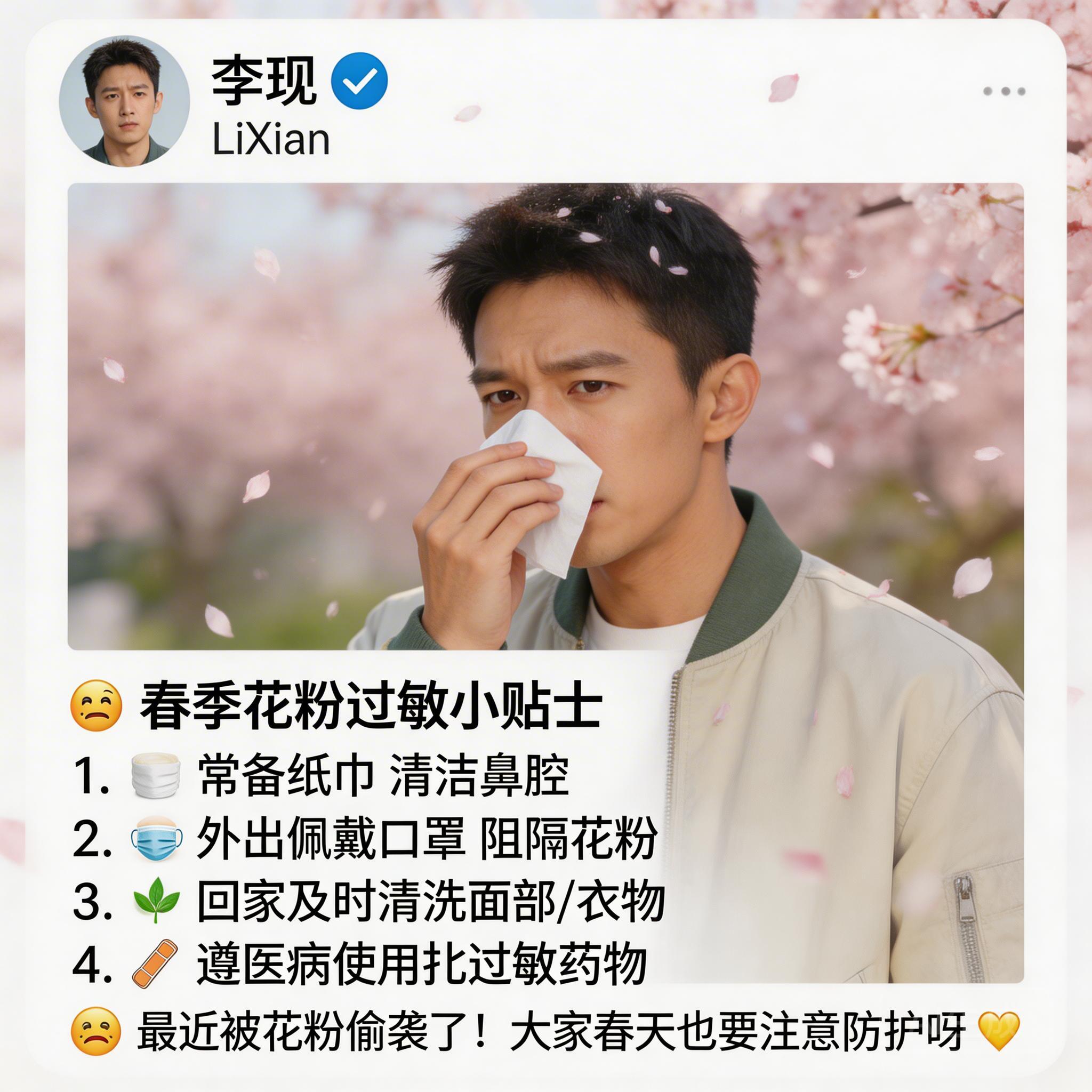 3月27日,演员李现通过个人社交平台分享春季运动日常,图中他把脸包得严严实实,并发文写道:气温回升,开启路跑。北京到了最舒服的气温,却不是最舒服的季节。花粉过敏快折磨死我了,不敢想接下来的杨柳飞絮。