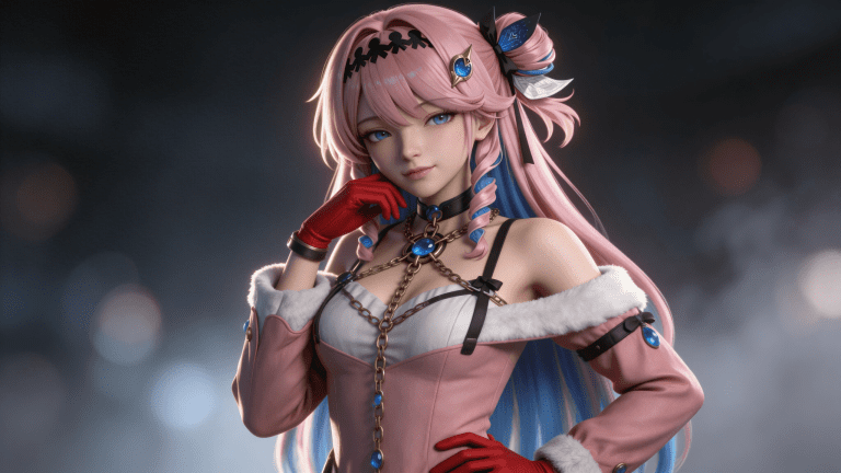 cosplay参考图中的人物,摆出帅气姿势,写实风格,写真风格,神性美感,建模3d皮肤,次表面散射,皮肤光泽感强,水润通透,精细的皮肤纹理,精细的衣服纹理,白嫩皮肤,美白滤镜,真人3d建模脸,超高分辨率,全身女,ue5建模,高细节,电影级特效,高挑修长,3d动画渲染,大片高级感,电影美学,大师杰作。CGI,虚幻引擎5渲染,oc渲染。皮肤白皙干净光滑水润细腻清透。干净光滑的画面风格,呈现出极致清晰的光滑镜面质感画风。CG特效,惊艳,光影交错,轮廓光。电视剧滤镜,五官立体。场景构图。强烈的明暗对比,垂坠感,丰富细节,朦胧感,强化面部阴影,柔焦处理的高斯模糊效果,明暗交错的戏剧性光影,虚实结合的构图张力,双色温闪光灯布光,背景光斑虚化处理。高精建模。画风为国产3d,3D动漫CGOC渲染质感。