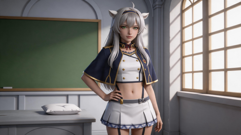 cosplay参考图中的人物,脸部修改成御姐脸,人物身材修改成九头身大长腿模特比例,摆出帅气姿势,写实风格,写真风格,神性美感,建模3d皮肤,次表面散射,皮肤光泽感强,水润通透,精细的皮肤纹理,精细的衣服纹理,白嫩皮肤,美白滤镜,真人3d建模脸,超高分辨率,全身女,ue5建模,高细节,电影级特效,高挑修长,3d动画渲染,大片高级感,电影美学,大师杰作。CGI,虚幻引擎5渲染,oc渲染。皮肤白皙干净光滑水润细腻清透。干净光滑的画面风格,呈现出极致清晰的光滑镜面质感画风。CG特效,惊艳,平行光。电视剧滤镜,五官立体。场景构图。垂坠感,丰富细节,朦胧感,高精建模。画风为国产3d,3D动漫CGOC渲染质感。
